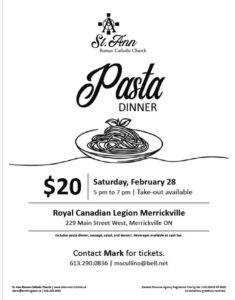 February 28, 2026 – Pasta Dinner for St Ann Catholic Church